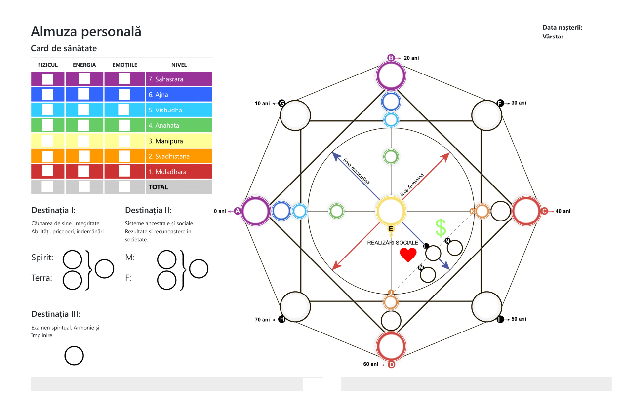 Harta Almuza este împânzită cu diamante și programe mentale, fiecare indicând aspecte ale vieții care necesită atenție și dezvoltare personală. Dacă aveți întrebări despre relații de cuplu, relații părinte-copil, sau orice alt aspect important al vieții, Almuza poate oferi răspunsuri conștiente, facilitând o înțelegere mai profundă și acțiuni constructive pentru binele personal și al relațiilor.